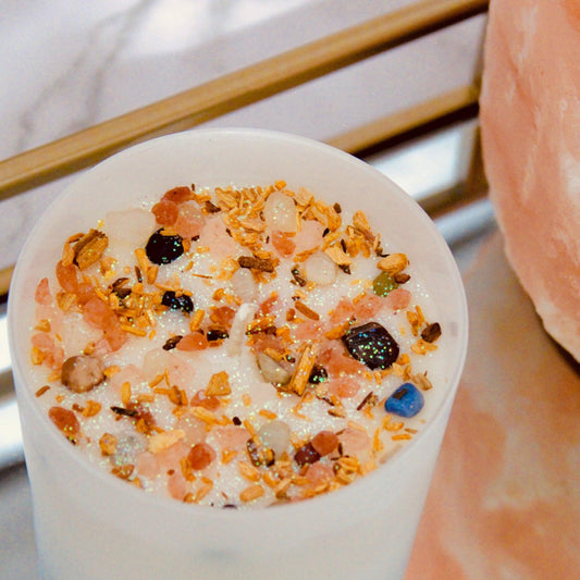Discover the magic of intention candles created with high-quality crystals, herbs, essential oils, and soy wax. Crafted with powerful intentions.