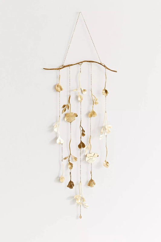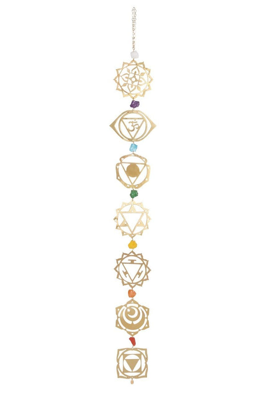 Celestial Moon Phase Wall Hanging with Semi-Precious Gemstones, 6" L x 42" H, Handmade in NYC