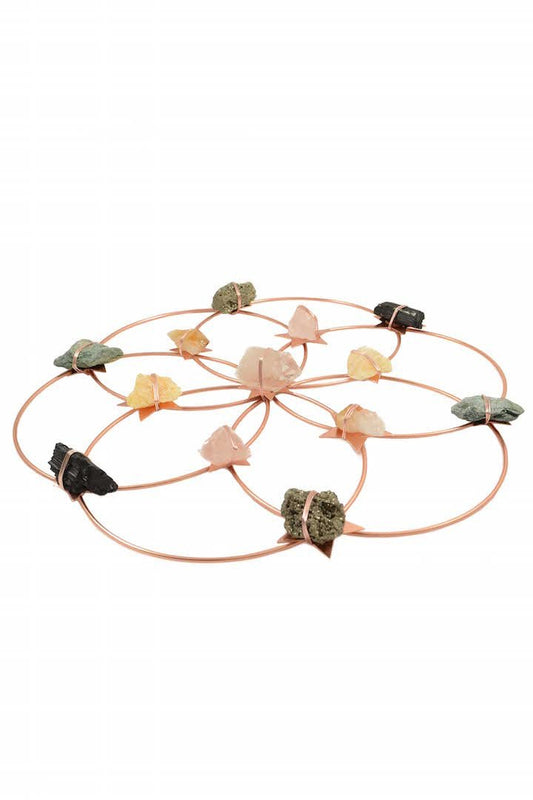 Flower Of Life Healing Crystal Grid - Rose Gold Rainbow - Large