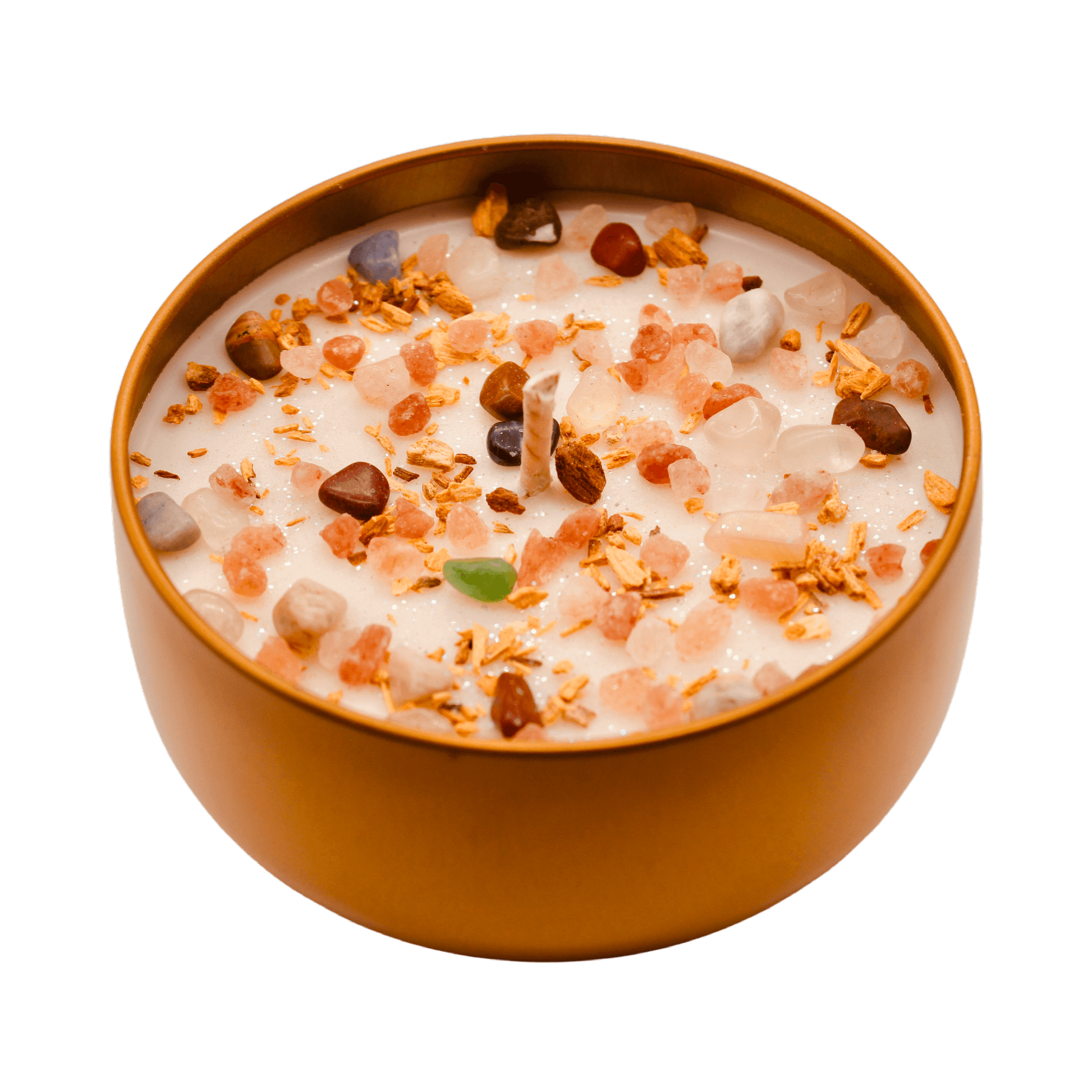 Our Good Juju Candle is here to boost your vibes and fill your space with good juju. This positivity candle is made with a mix of crystals, including palo santo, for an uplifting and cleansing experience. With a lavender and lemon fragrance, this candle is perfect for promoting relaxation. Our mix of crystals may include some or all of the following: Clear Quartz, Tiger Eye, Amethyst, Red Jasper, Blue Sodalite, Green Aventurine, Rose Quartz, Unakite, Rhodonite, Rose Quartz, Agate, Picture Jasper, Hematite, Jade, Dalmation Jasper.